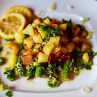 Grab your vegetables, I chose asparagus because that’s what I had in the fridge. Cook your asparagus the way you like it. You’ll be the one eating it after all, not me. I also roasted some tomatoes. While all that was cooking I made a lemon, fresh mint, garlic and olive oil dressing.