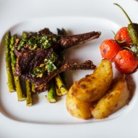 When the potatoes are almost done, start grilling the lamb. Don’t forget to turn them over you incompetent peasant. Grab a frying pan. Add a tablespoon of olive oil and add your asparagus. Season with salt and squeeze over some lemon. Cook for 5-7 minutes.